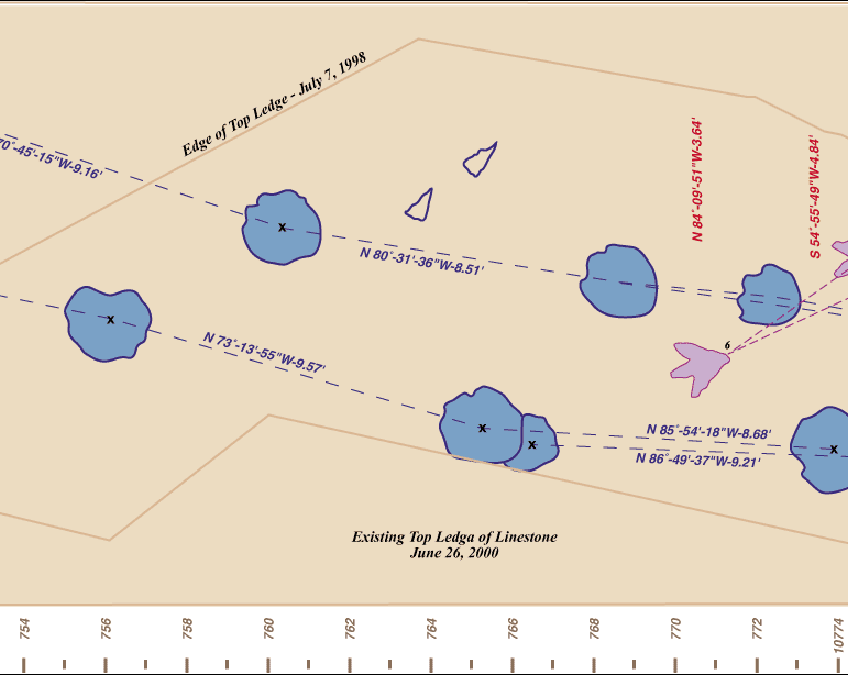 In June, 2000, we excavated 19 new dinosaur tracks...including 11 sauropod tracks. This is the first sauropad trackway found on the McFall layer.